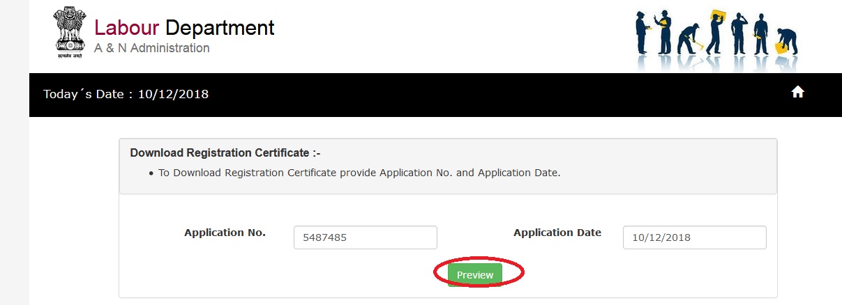 To Download Registration Certificate provide Application No. and Application Date, then click on preview button to download the Registration certificate.
