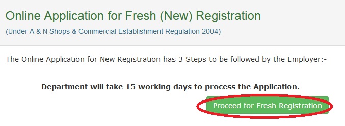 ** Registration of New Establishments under A & N Shops & Commercial Establishment Regulation 2004