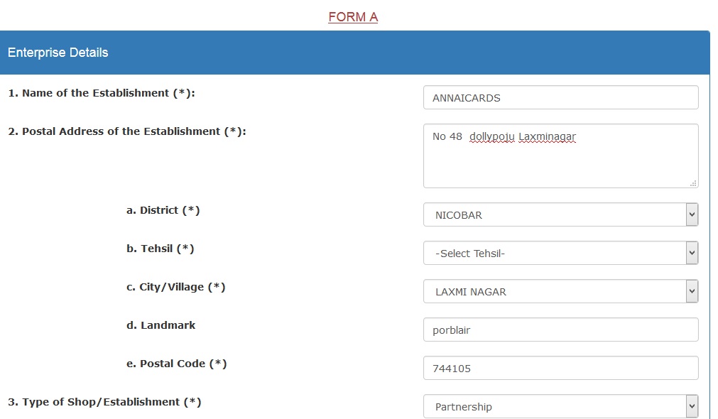 andssw1.and.nic.in Registration of New Establishment : Andaman & Nicobar Labour Department