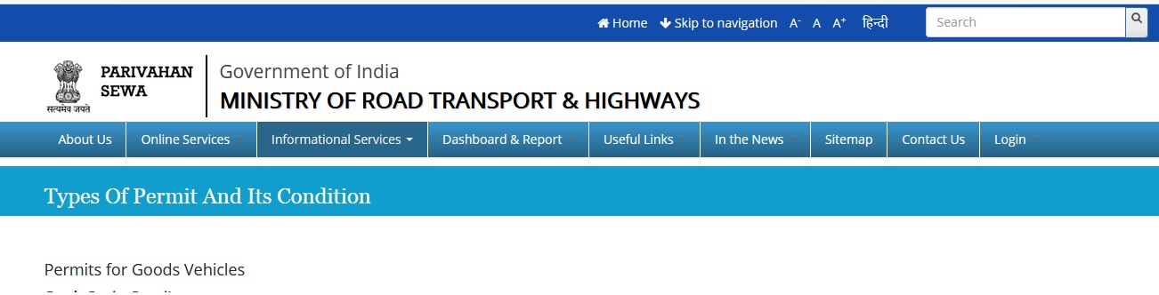 parivahan.gov.in Types Of Permit : Ministry Of Road Transport & Highways