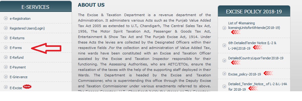 etdut.gov.in E-Form Chandigarh : Excise & Taxation