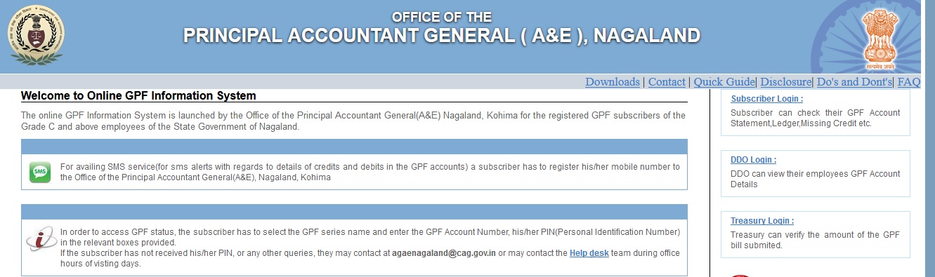 The online GPF Information System is launched by the Office of the Principal Accountant General (A&E) Nagaland, Kohima for the registered GPF subscribers of the Grade C and above employees of the State Government of Nagaland.