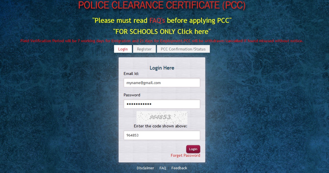 To apply for Police Clearance Certificate (PCC) For Employment, Follow the below steps