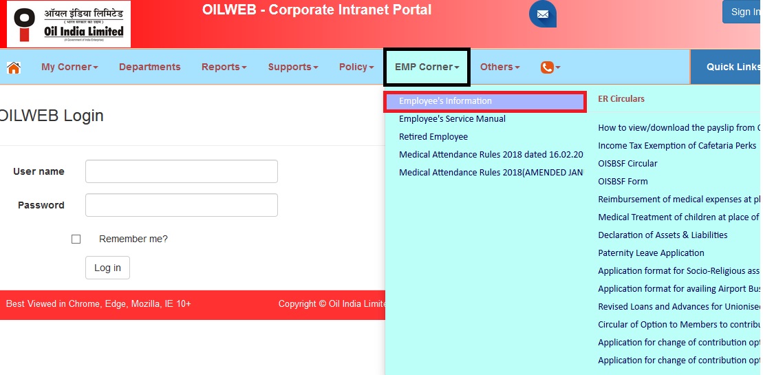 Now Oil India Employees can view their payslip online. Follow the below steps to View & Download Payslip/ Employee Information Online.