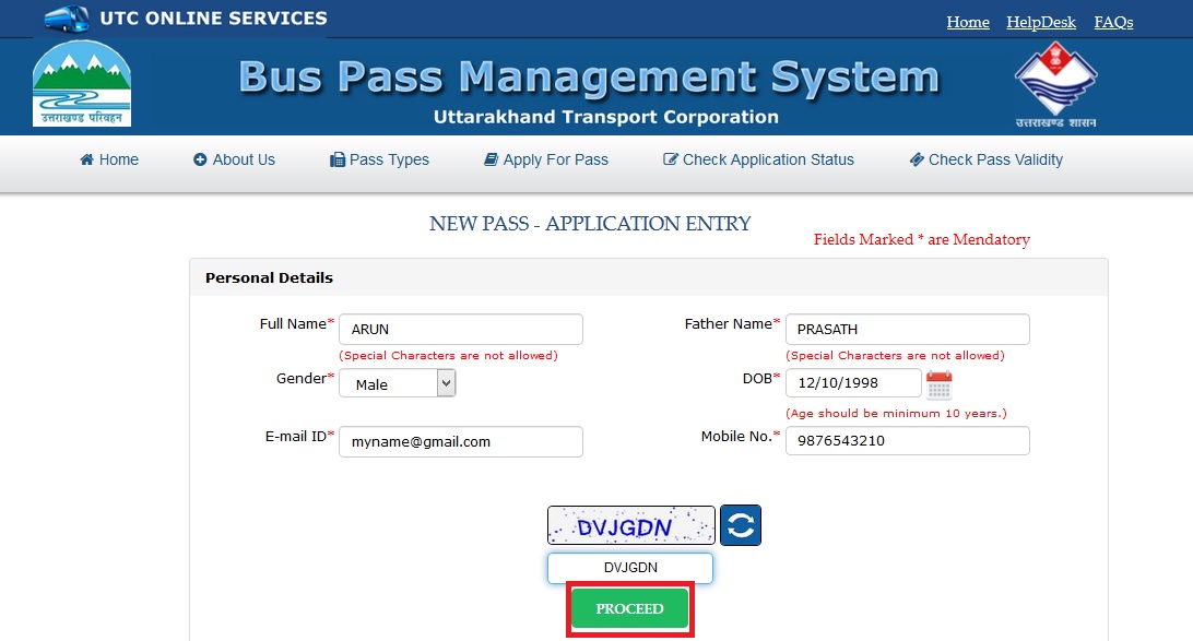 utconline.uk.gov.in : Bus Pass Online Application Uttarakhand