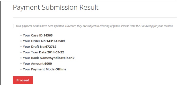 13. Click on proceed Button to make the payment