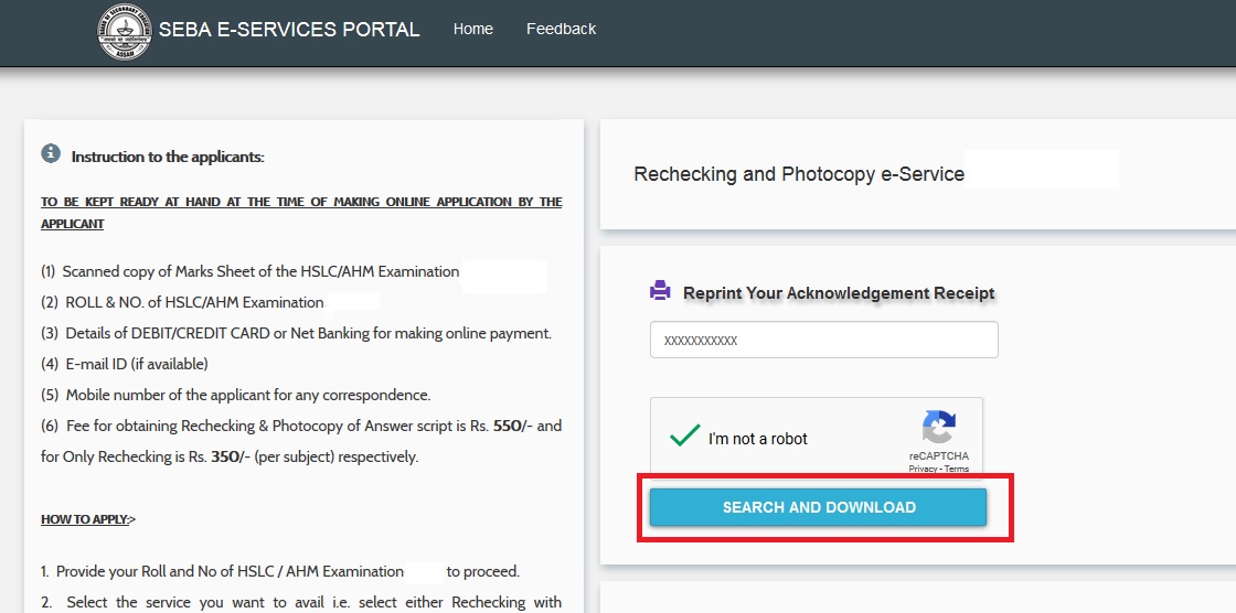 SEBA Assam Rechecking and Photocopy Service is available online.
