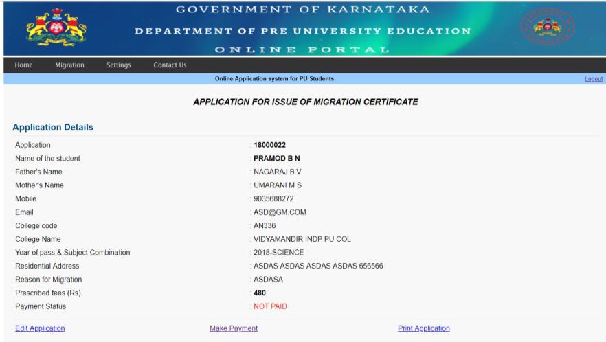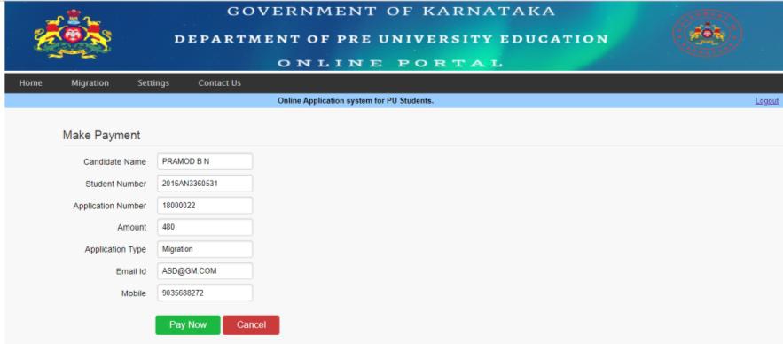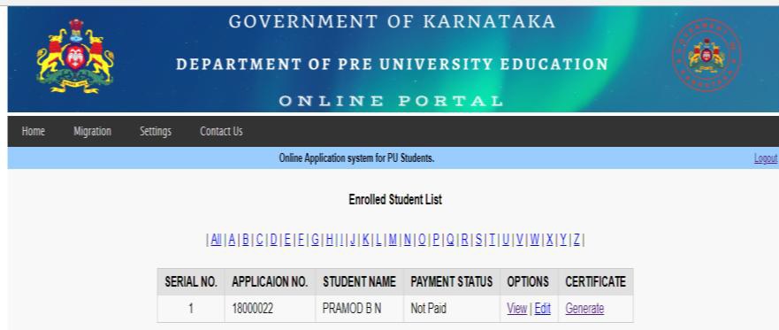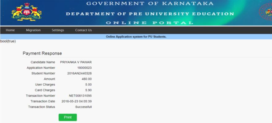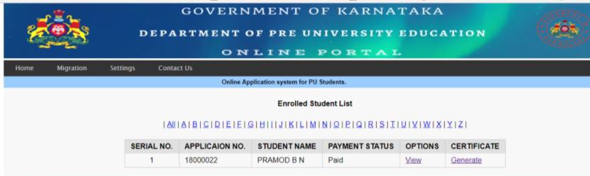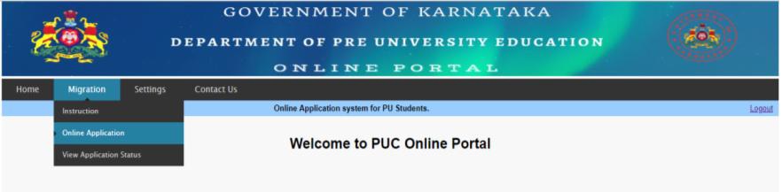pue.kar.nic.in Migration Certificate Online Application : Pre University Education Karnataka