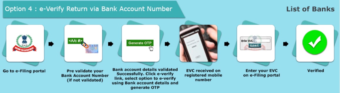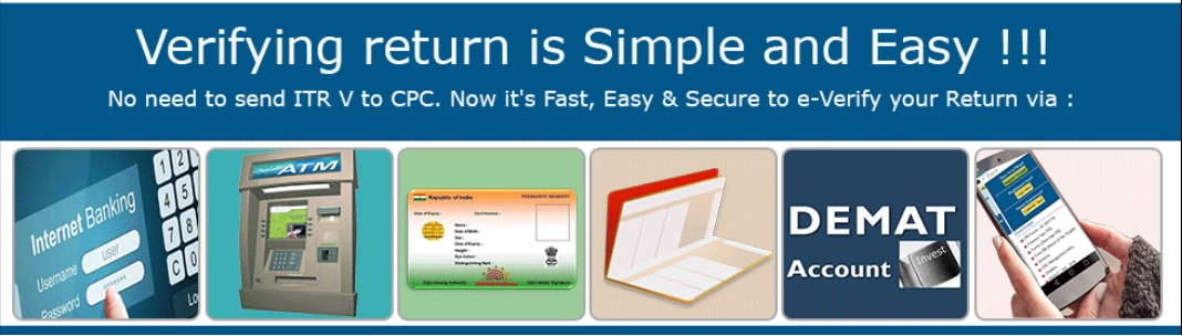 e-Verify your Return using Aadhaar OTP, Net Banking, Pre-Validated Bank Account and Pre-Validated Demat Account.
