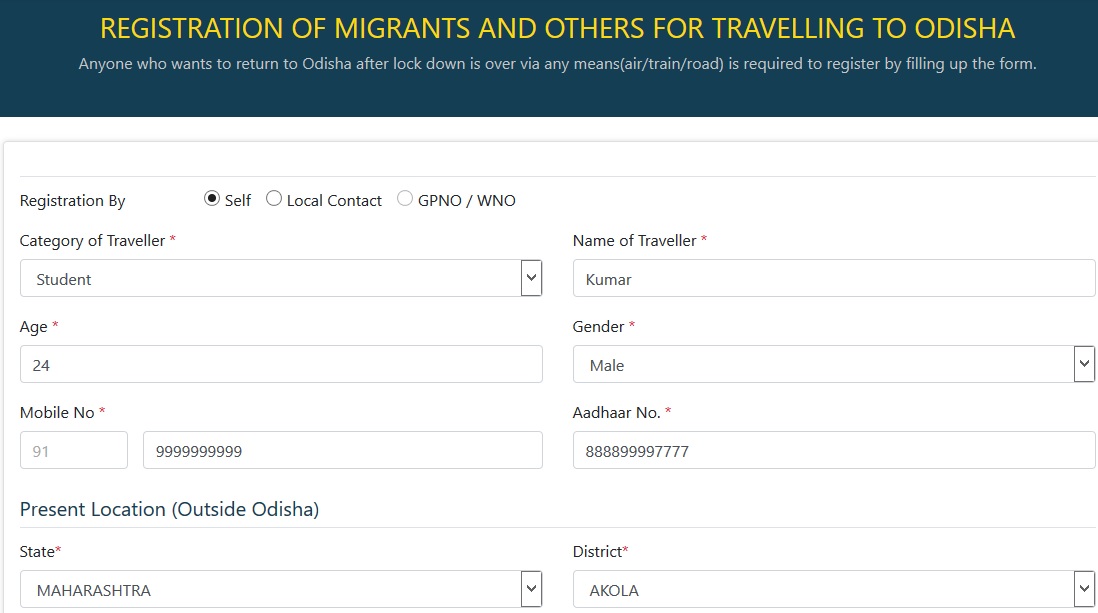 Anyone who wants to return to Odisha after lock down is over via any means(air/train/road) is required to register by filling up the form.