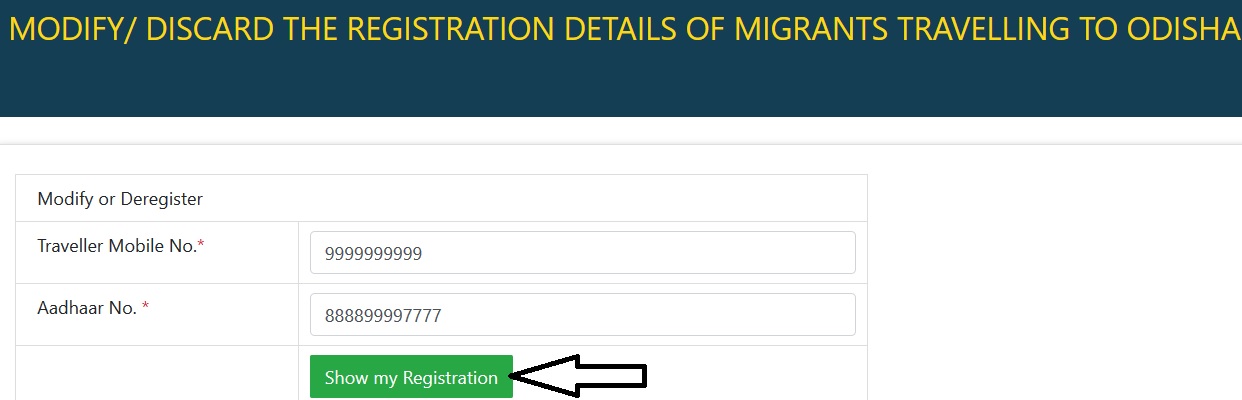 Modify/ Discard the Registration Details of Migrants travelling to Odisha.