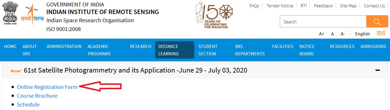 Facility Name : ISRO Free Online Course Registration 2020 | IIRS-ISRO Outreach Programme 2020
