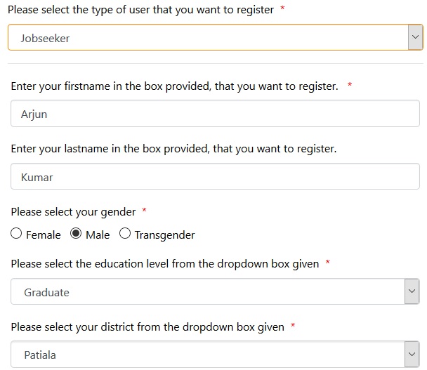 User can use Punjabi translation of the portal, feature is coming soon OR You can go to your nearest District Bureau of Employment and Enterprise (DBEE) for this registration.