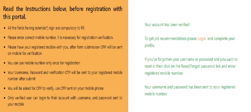 The basic requirement for the registration is mobile number. The job seeker will have to fill the form for registration. Please see answer to question no 1 as to how to register on pgrkam.com.