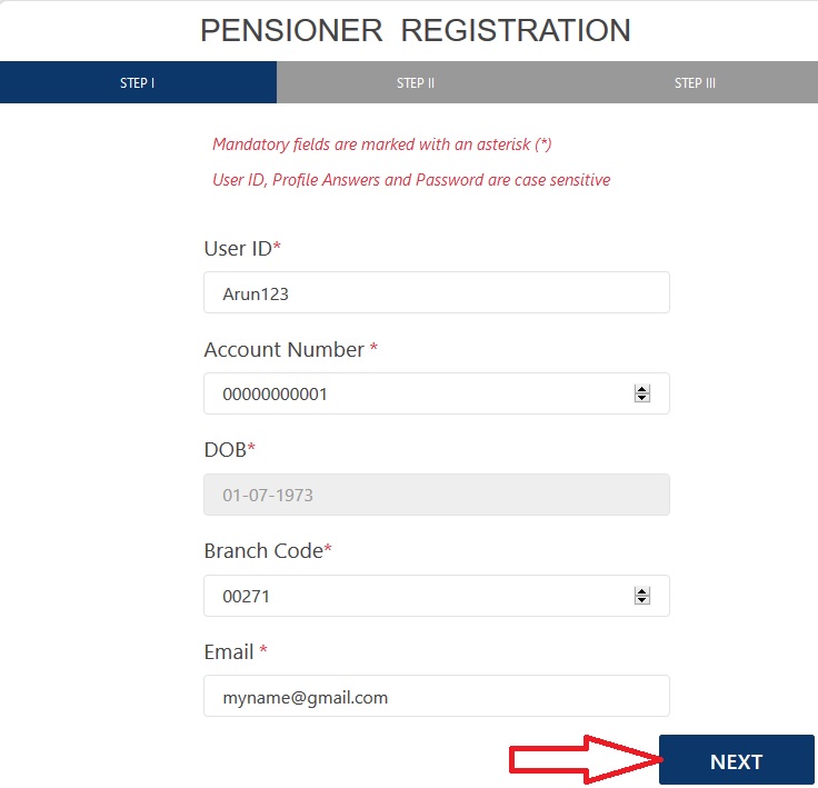 ** Create a User-id (to be created by the pensioner – min 5 characters)