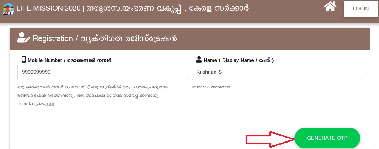 life2020.kerala.gov.in Life Mission 2020 Online Registration