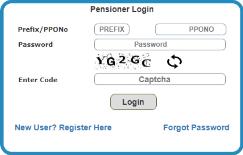 Step 9 : After the successful registration, Enter the Prefix, PPO Number and the password in the Pensioner login Screen