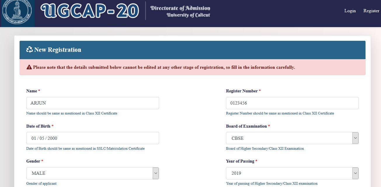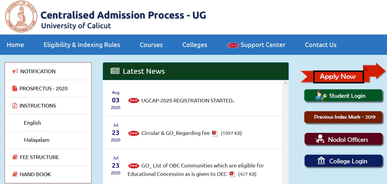 University Of Calicut UGCAP 2020 Online Registration : cuonline.ac.in