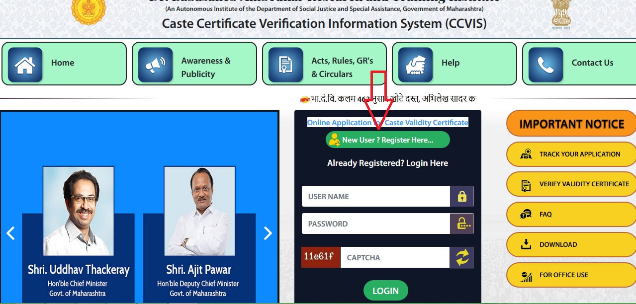 BARTI CCVIS Caste Certificate Verification Information System : bartievalidity.maharashtra.gov.in