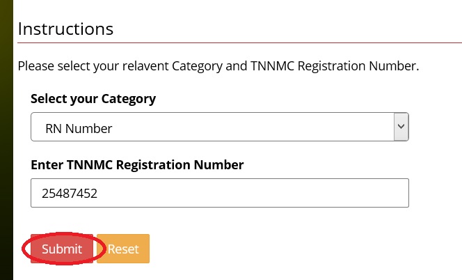 4 . After selecting the correct category, entering your TNNC number, your name will be displayed. Check the displayed name is correct. If it is showing some other people’s name, then you would have selected wrong category, select the correct category and re-try or contact 044 – 4352 4504.
