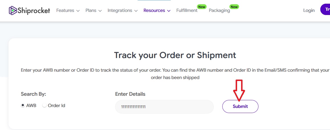 Step-2 : Enter your AWB number or Order ID to track the status of your order.