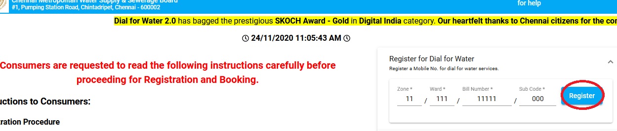Consumers are requested to read the following instructions carefully before proceeding for CMWSSB Water Tanker Registration and Booking.