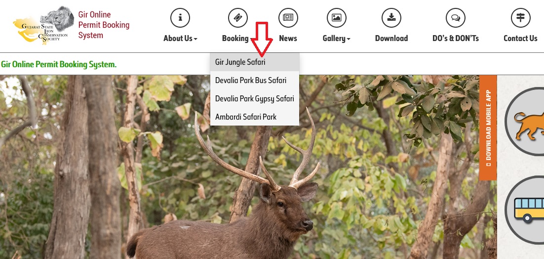 1. Go to the website of GSLCS Gir Online Permit Booking System