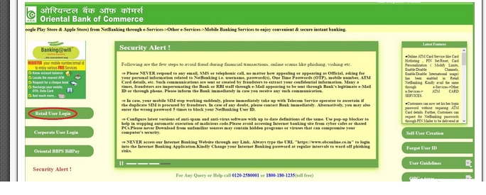 You are required to login to the Oriental Bank of Commerce internet banking to check the balance online. Open the internet banking page provided above. Click the link Internet Banking to go to the banking website.