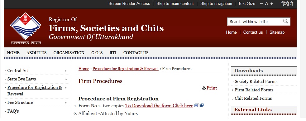 Home Page :http://society.uk.gov.in/pages/display/63-firm-procedures