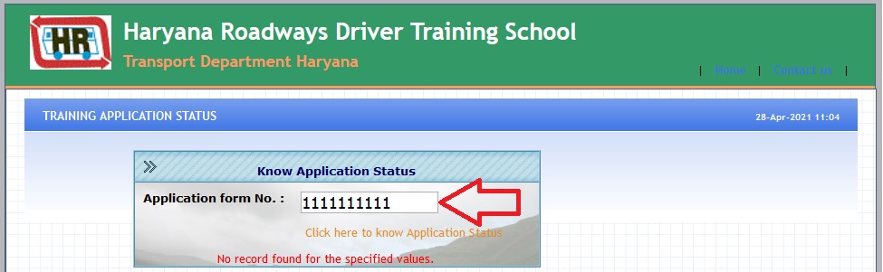Step-1 : Go to the link https://dts.hrtransport.gov.in/TrainingApplicationStatus.aspx