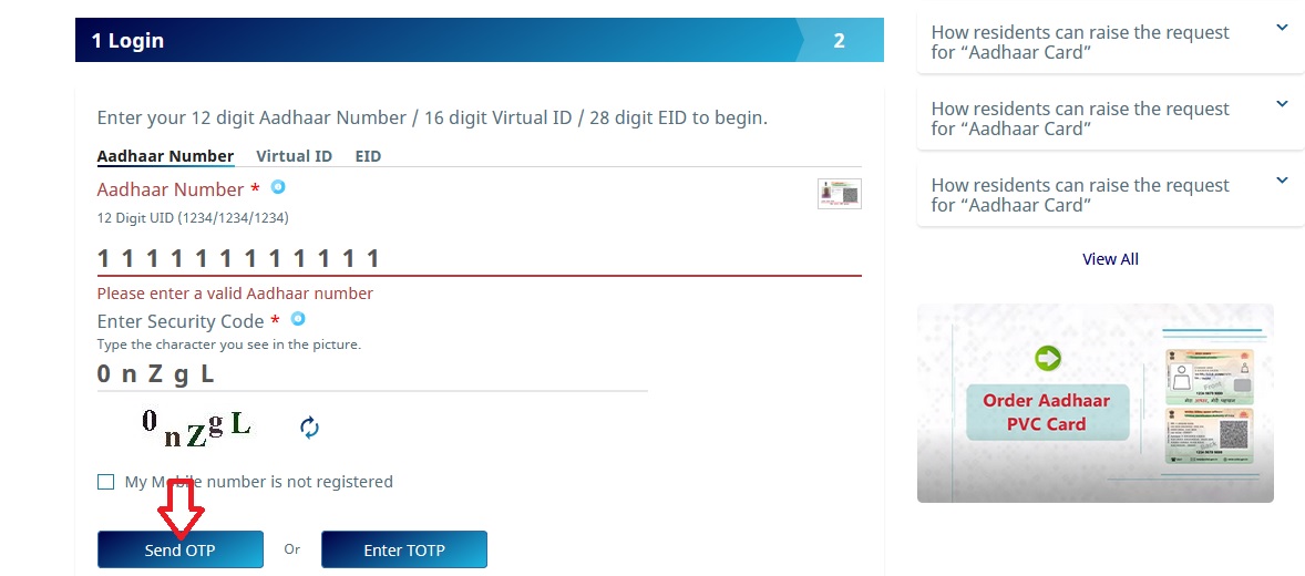 Step-2 : Enter your 12 digit Aadhaar Number / 16 digit Virtual ID / 28 digit EID