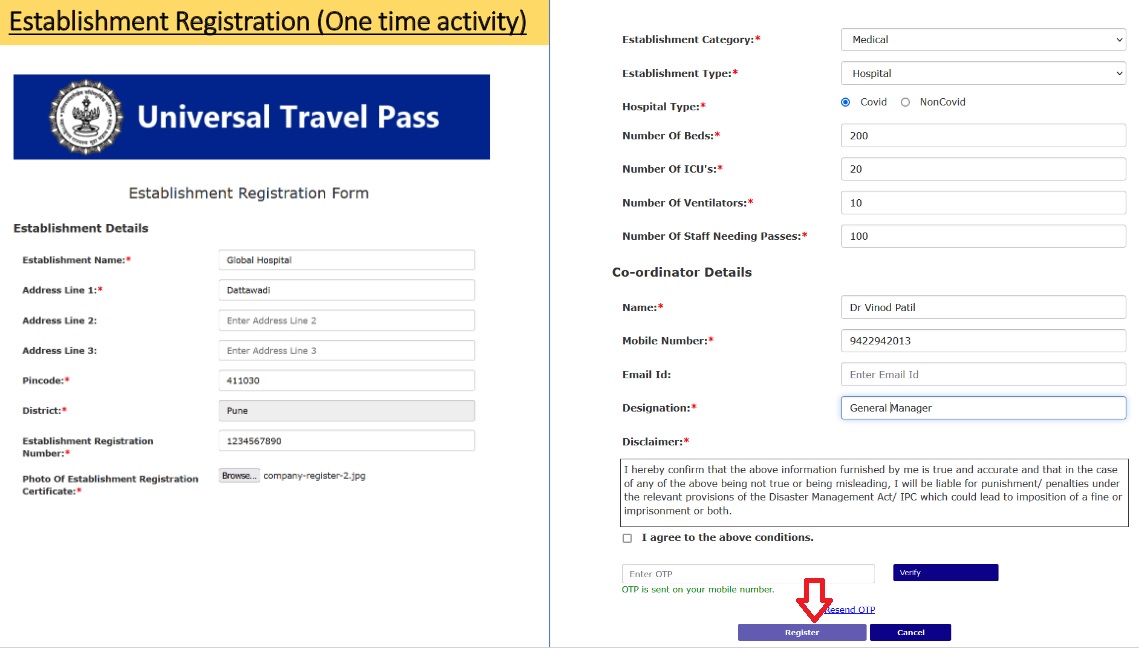 Follow the below steps for Maharashtra Universal Travel Pass Establishment Registration
