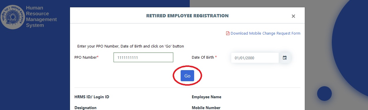 4. I Smt Bijali Das Ex retired employees widow wife, till now I have not created HRMS account due to I didn’t know clear about the railway site, Hence please guide for the about matter, my PPO no.KIR/PN/3410 DTD.30.04.2000,PLEASE GUIDE me..
