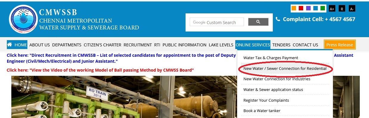 chennaimetrowater.tn.nic.in Apply for Water/ Sewer Connection : Chennai Metropolitan Tamil Nadu