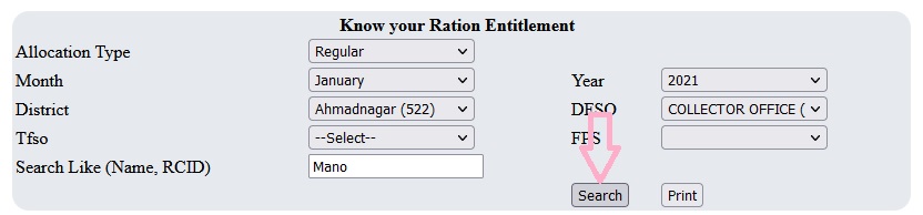 Step-3 : Select Allocation Type ,Month ,Year ,District ,DFSO ,Tfso ,FPS ,Search Like (Name, RCID)