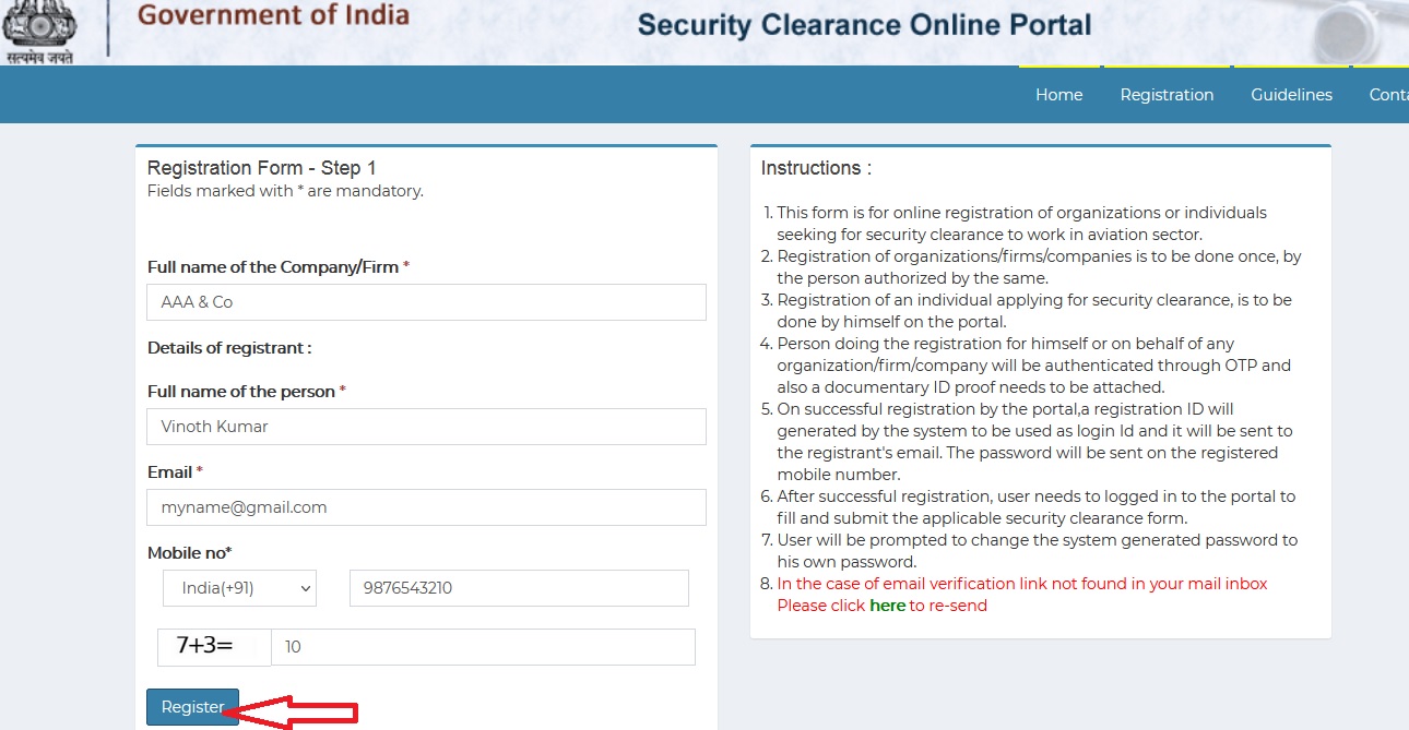 ** Registration of an individual applying for security clearance, is to be done by himself on the portal.