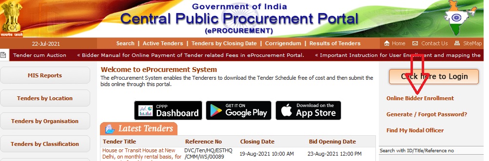 etenders.gov.in eProcurement System : Central Public Procurement Portal