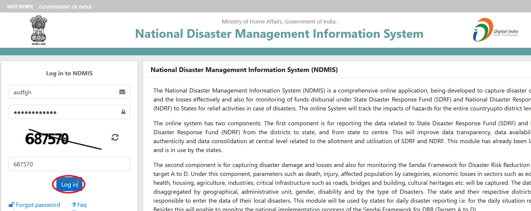 Website : https://ndmis.mha.gov.in/ndmis/login