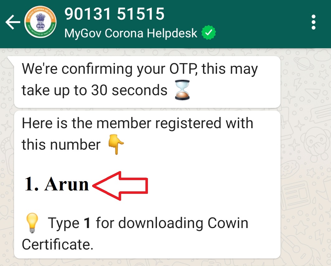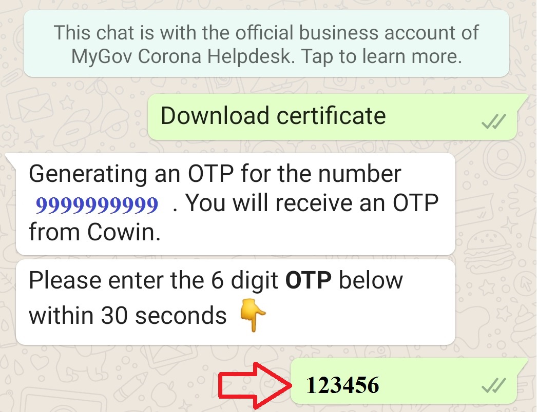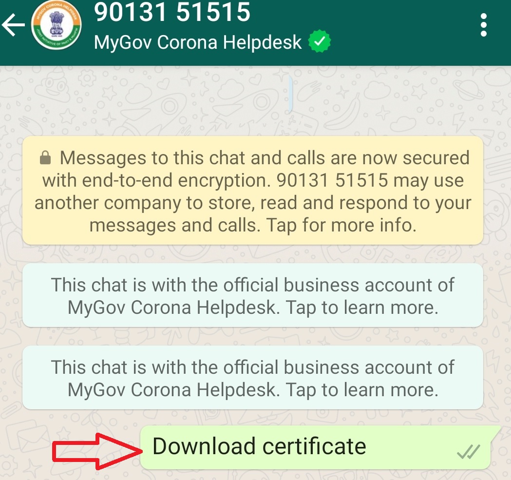 Step-2 : Then go to that number in WhatsApp, type ‘Download Certificate’ and send it
