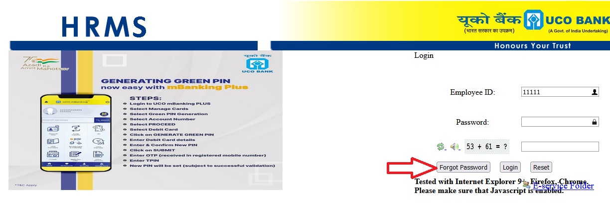Step-1 : Go to the link https://hrms.ucoonline.in/login.action