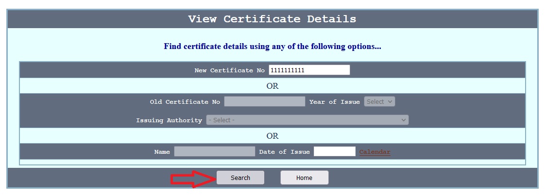 Enter Old Certificate Number, Year of Issue and Issuing Authority details