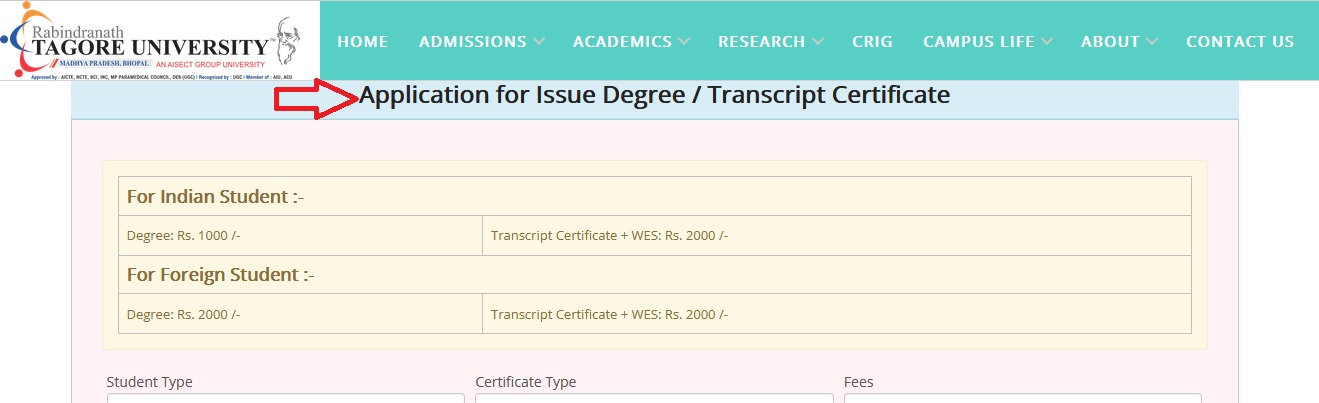 Rabindranath Tagore University Final Degree Certificate Requisition Form
