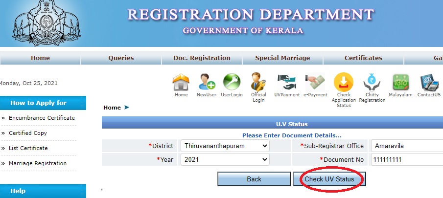 Kerala Registration Department, Know Your Document Undervalued or Not Facility