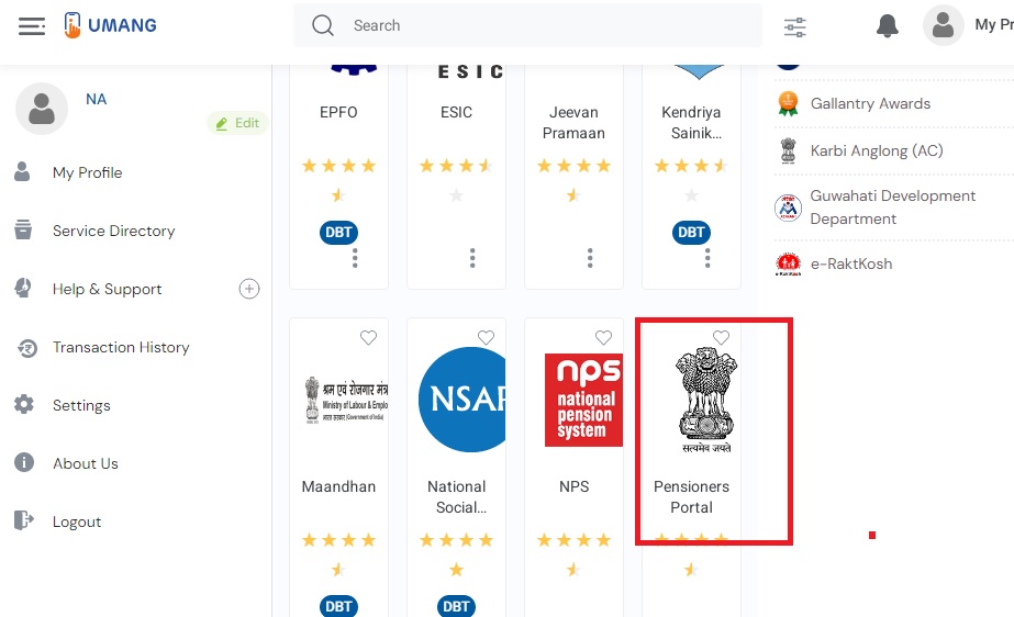 web.umang.gov.in Pensioners Portal : Pension Welfare