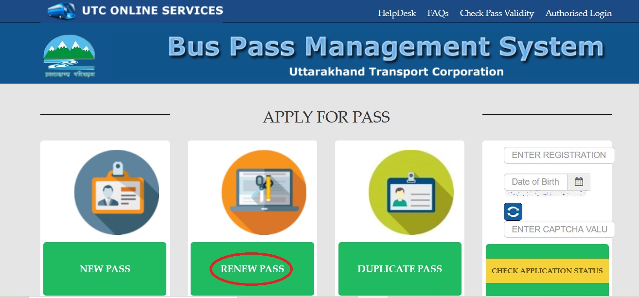 Just follow the simple steps mentioned below to renew Uttarakhand Transport Corporation (UTC) Bus Pass online.