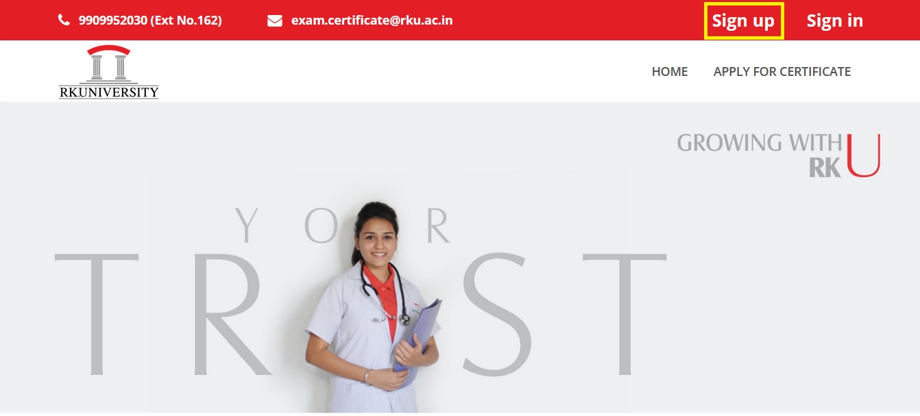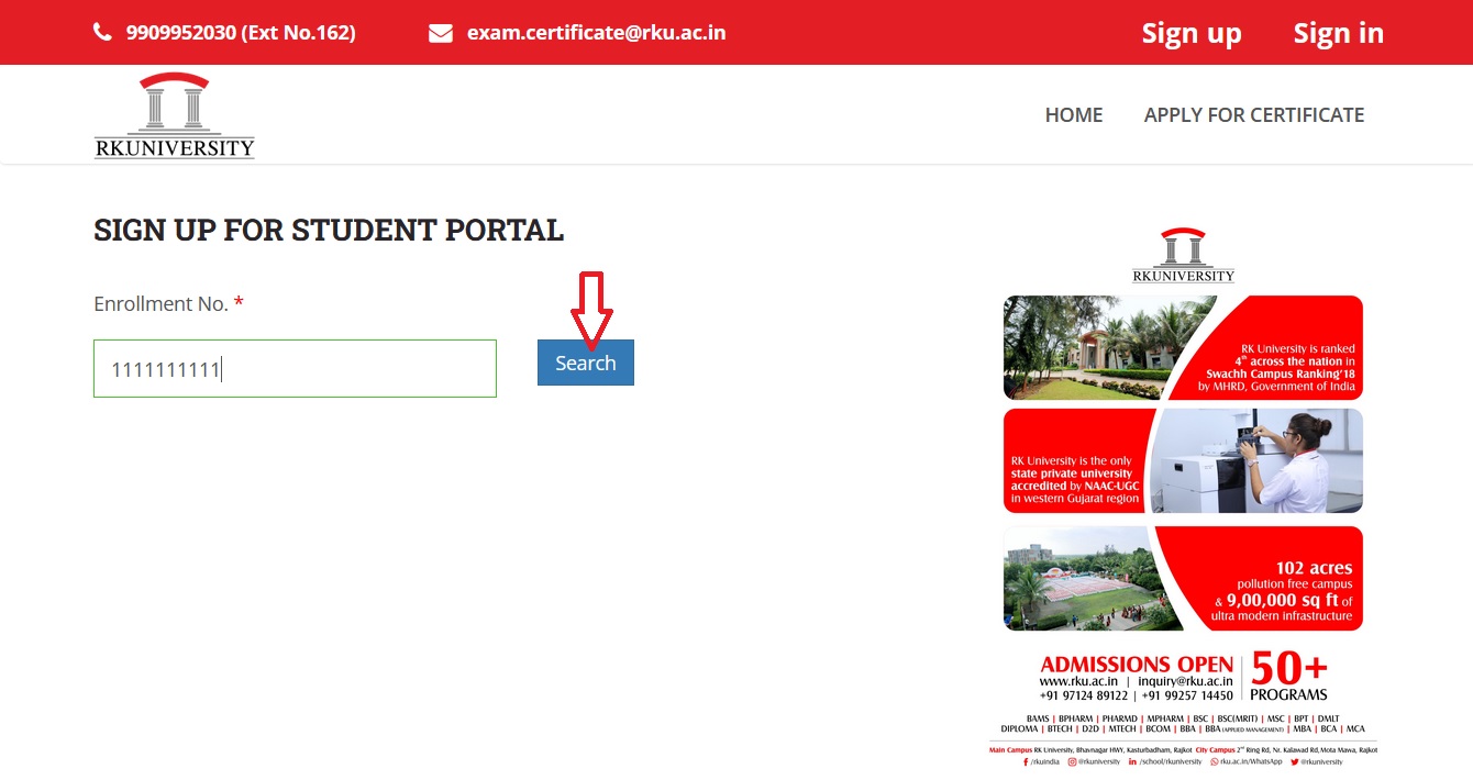 To Sign Up/Register Into RK University Student Portal, just follow the below simple steps mentioned below