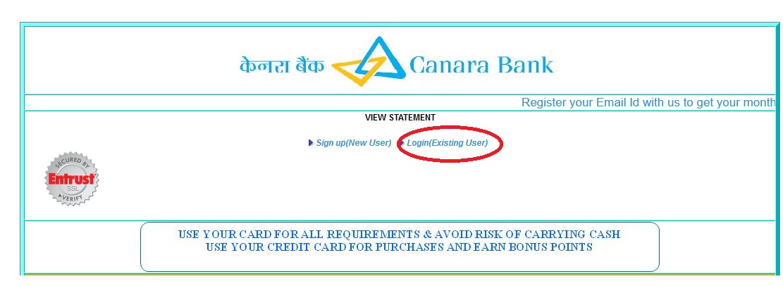 Canara Bank : Check Credit Card Statement Online