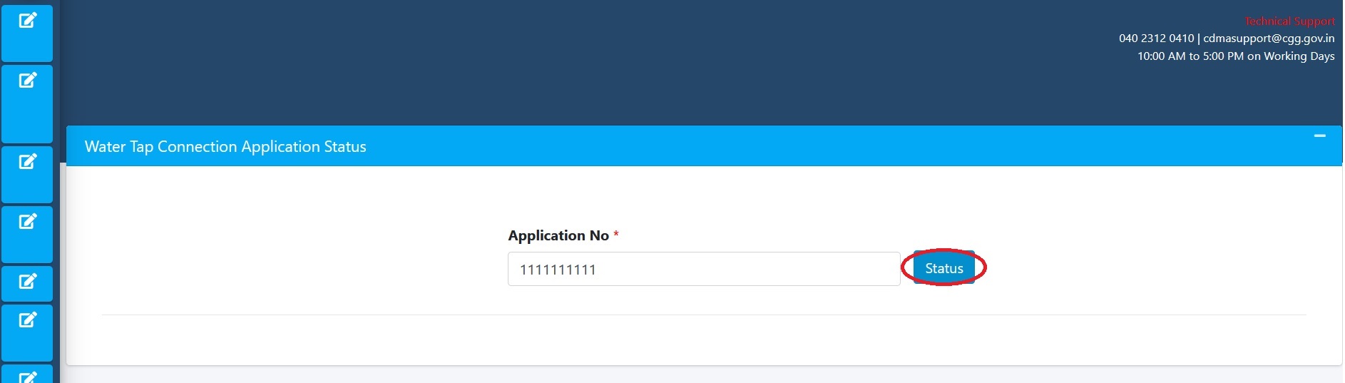 To Check CDMA Water Tap Connection Application Status, Follow the below steps