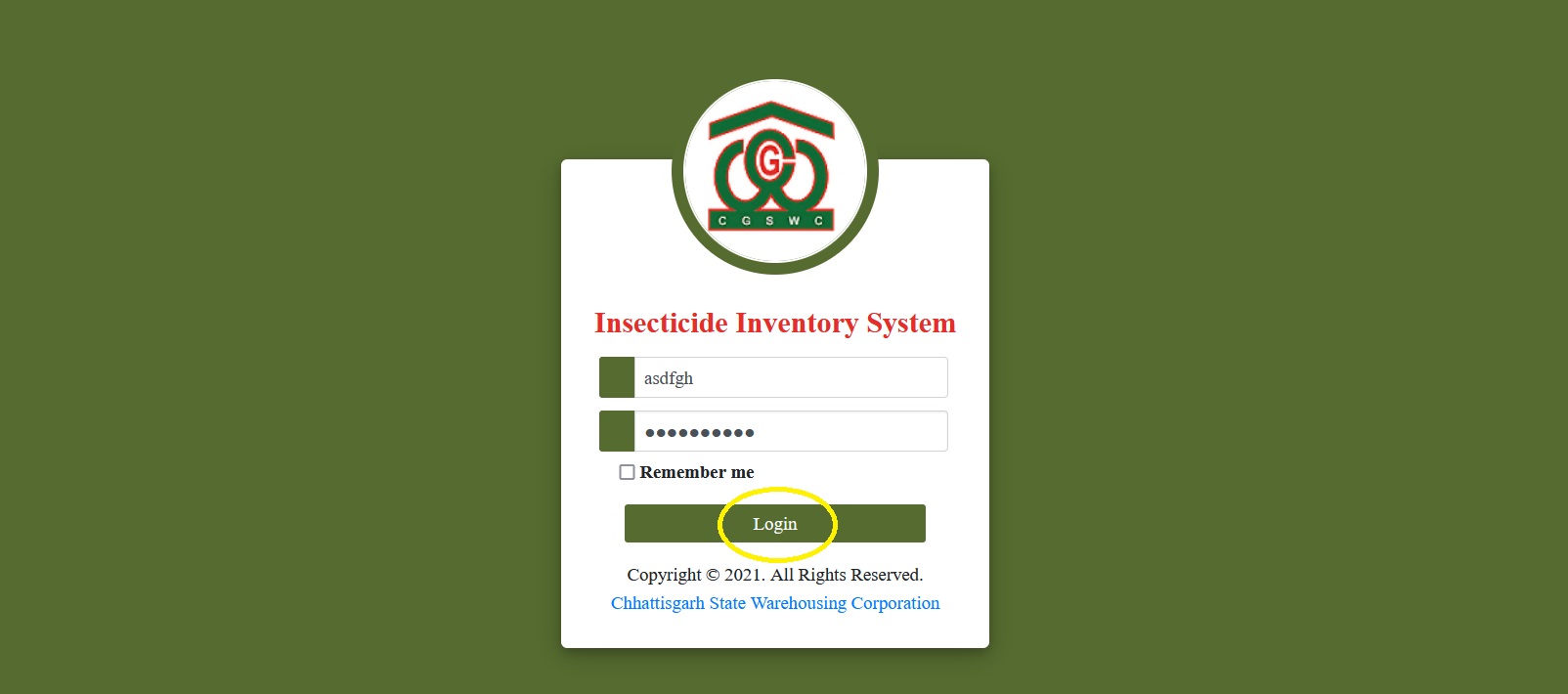 To login to CGSWC Chemical Insecticide Inventory System, follow the below steps