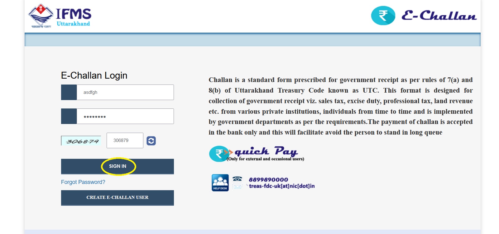 Facility Name : Download IFMS Uttarakhand e-Challan Online